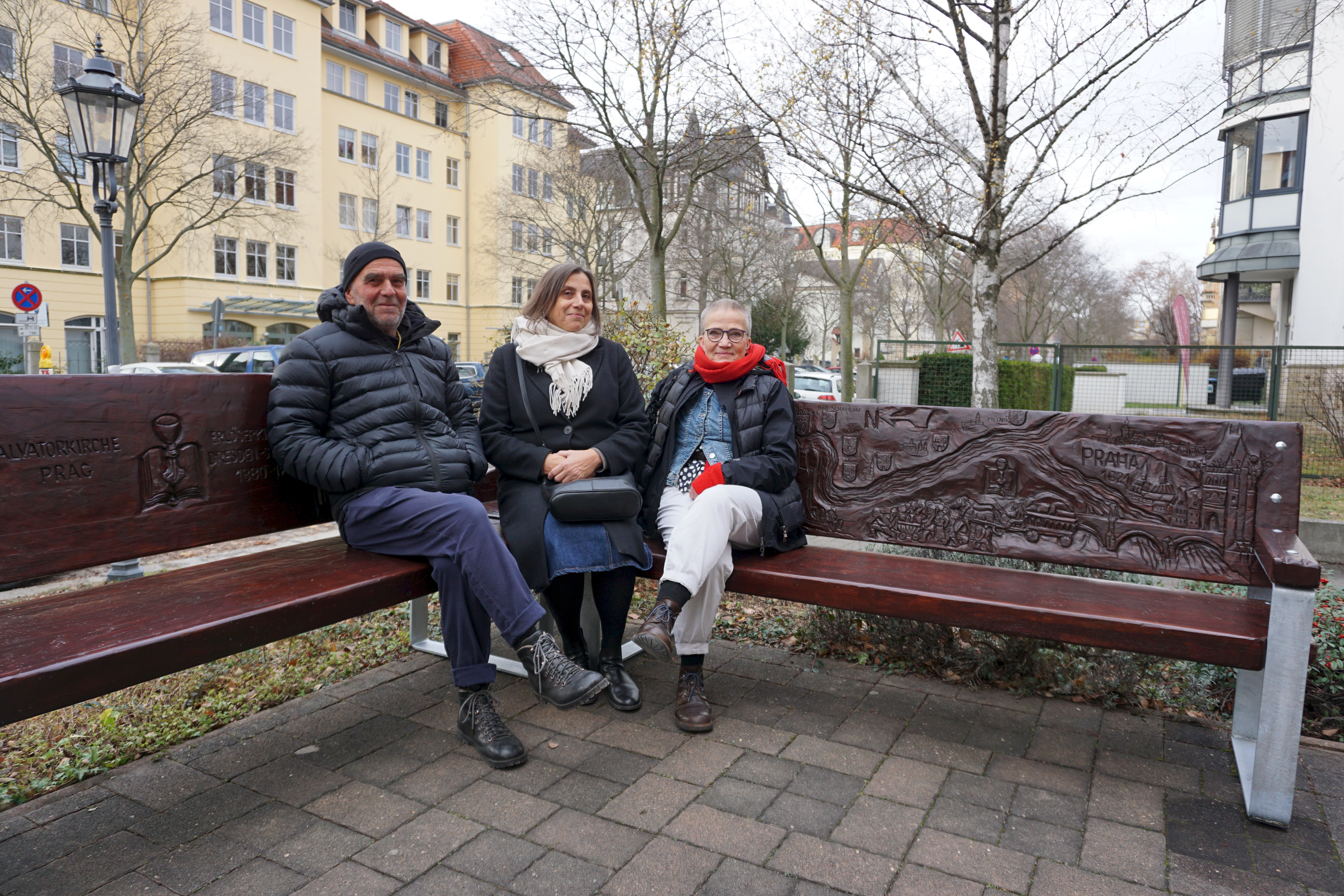 Heute heißt die Kirchgemeinde Johannes-Kreuz-Lukas. Nun erinnert die Bank nicht nur an die Herkunft der Gemeinde, sondern auch an die alte Erlöserkirche, die gemeinsam mit der Prager Salvatorkirche ebenfalls auf den Lehnen dargestellt ist. Und nicht nur das: Zwei Kelche der böhmischen Glaubensschwestern und -brüder sind der Gemeinde auch geblieben. Sie sind allerdings erst kürzlich zurückgekehrt, waren lange ausgelagert bzw. Teil der Ausstellung Sachsen Böhmen 7000 vor sieben Jahren in Chemnitz. Bei der Einweihung war übrigens Jana Cejpová vom Kirchenvorstand der Salvatorgemeinde anwesend. Beide Gemeinden unterhalten bis heute eine enge Partnerschaft. Finanziell unterstützt wurde die Herstellung der Bank, deren Rahmen aus feuerverzinktem Stahl von der Firma Metallgestaltung & Schmiede Andreas Nestler in Freital gefertigt wurde, vom Stadtbezirksbeirat Dresden-Blasewitz.