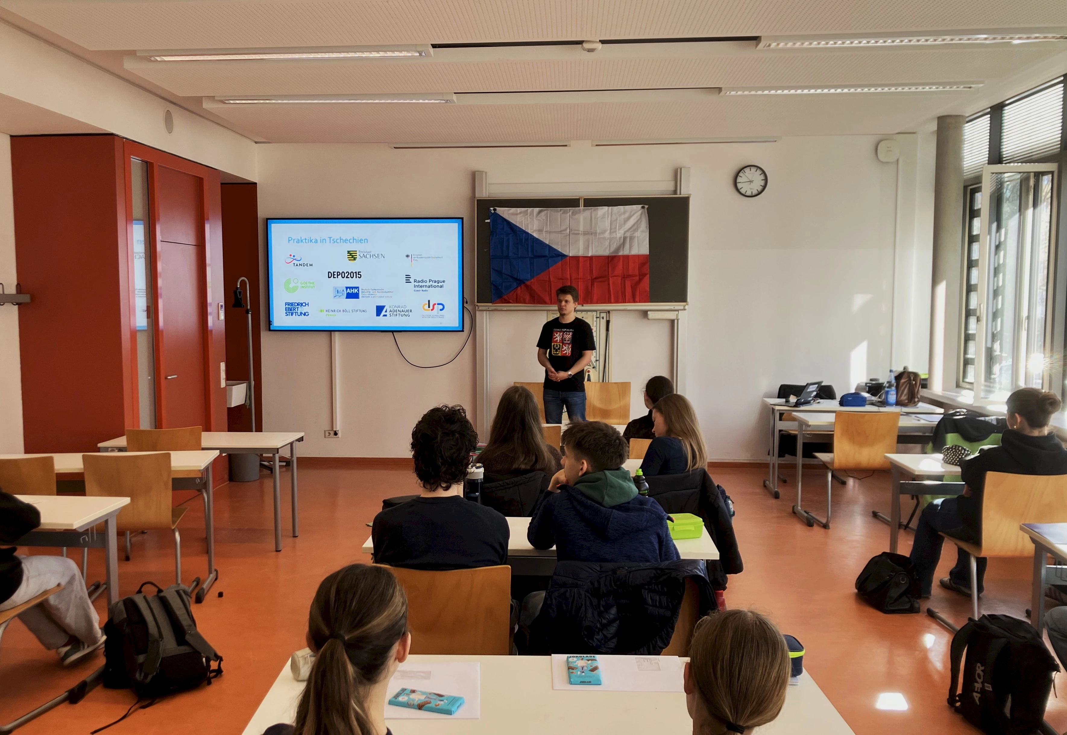 Dabei ging es nicht nur um trockene Fakten zu Land und Kultur, sonders die Referenten erzählten auch von ihren ganz eigenen Erfahrungen bei Auslandsaufenthalten in der Tschechischen Republik und gaben praktische Tipps zu Freiwilligendiensten, Praktika, bilateralen Begegnungsprojekten, Austausch- oder Studienprogrammen. Viele der Jugendlichen erfuhren erstmals, welche Möglichkeiten sich im nahe gelegenen Nachbarland bieten und dass dafür zahlreiche Fördermöglichkeiten zur Verfügung stehen, die man nur kennen und nutzen muss.