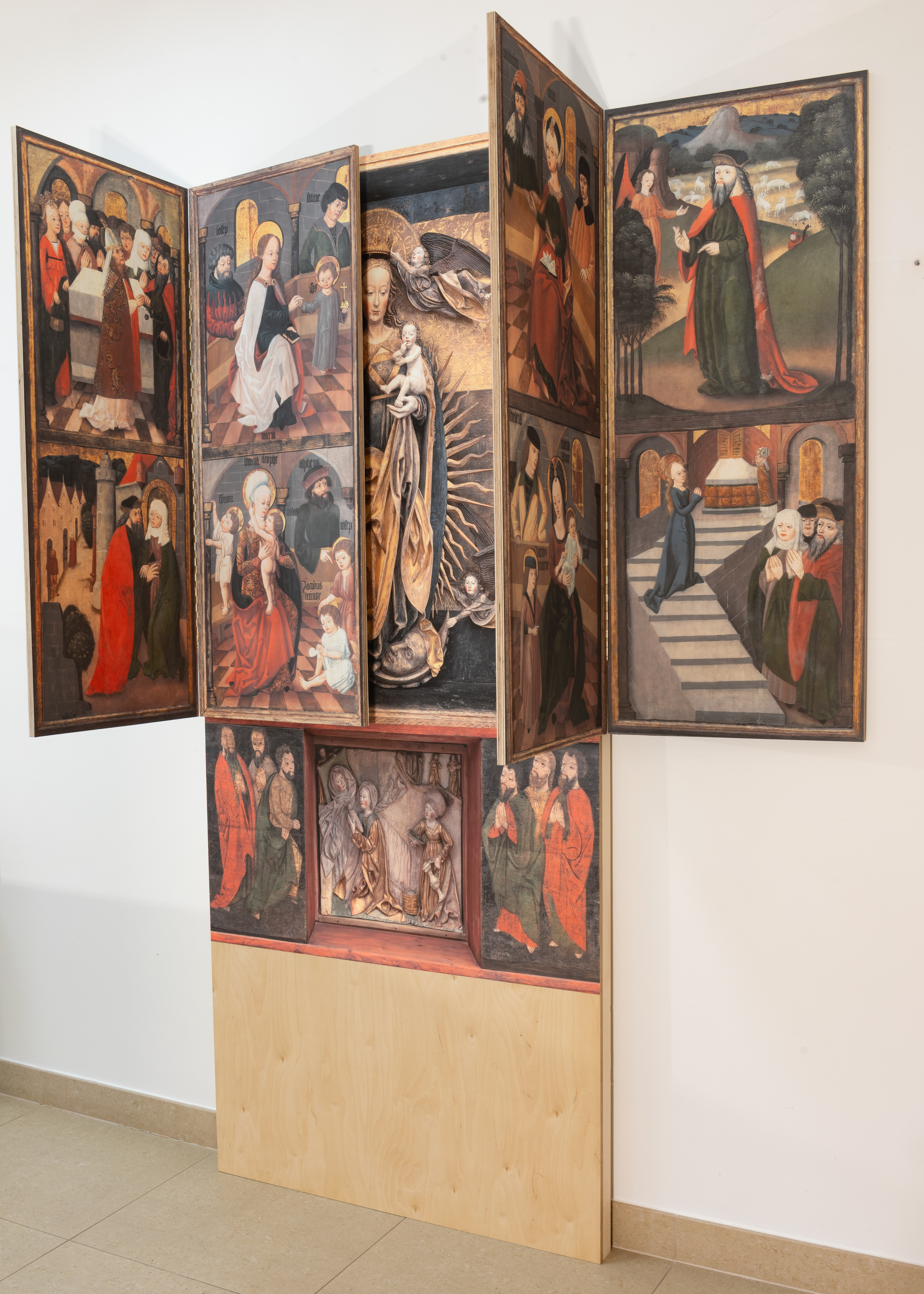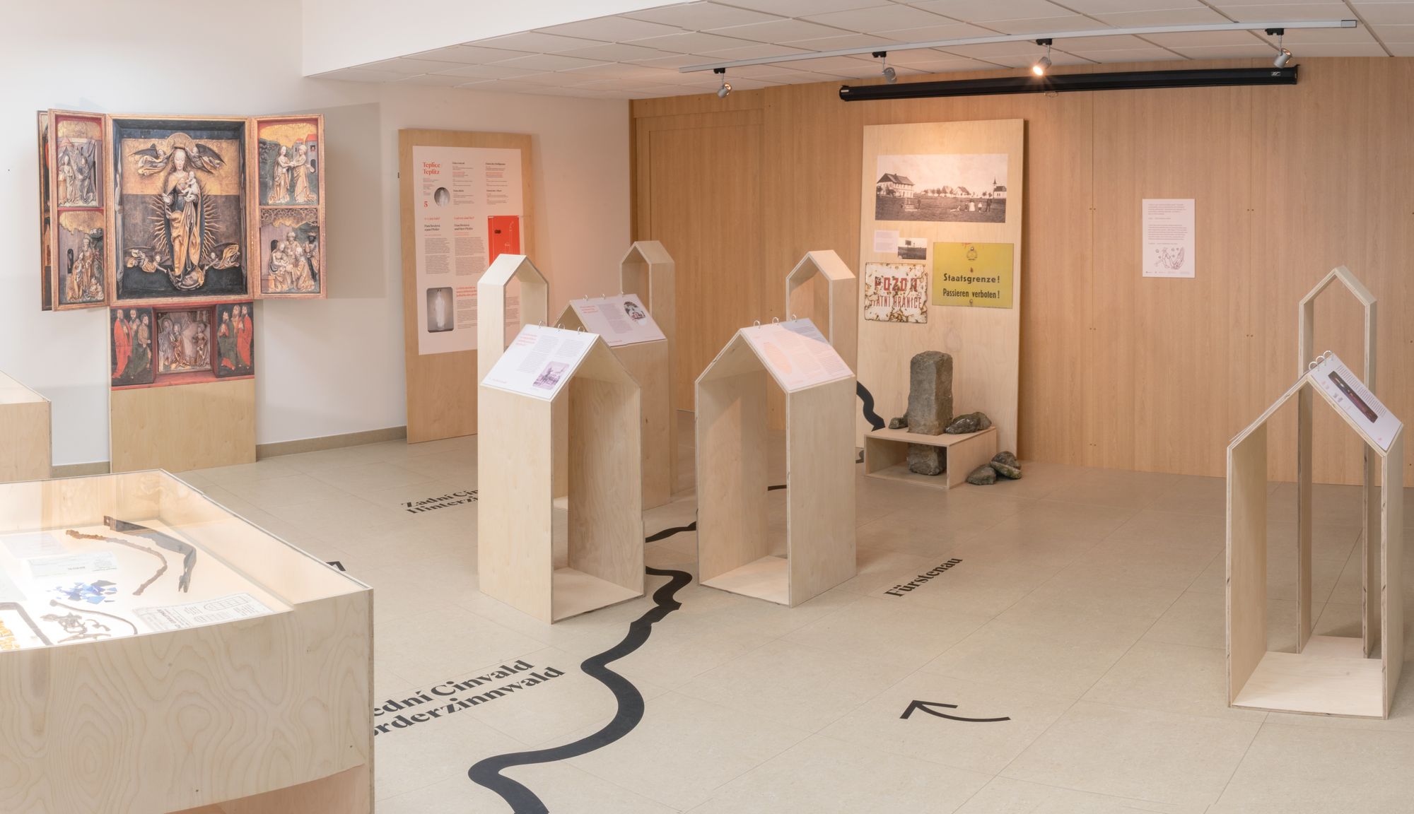 Výstava dokumentuje pouť Madony. Výtvarnými elementy jsou popsány jednotlivé zastavení, ve dvou velkých vitrínách jsou vystaveny archeologické nálezy z Vorderzinnwaldu a oltář je prezentován jako velkoformátová fotokopie. Na každém zastavení se návštěvníci seznámí s událostmi, legendami a historickou postavou, které ilustrují úzké vazby mezi Čechami a Saskem.
