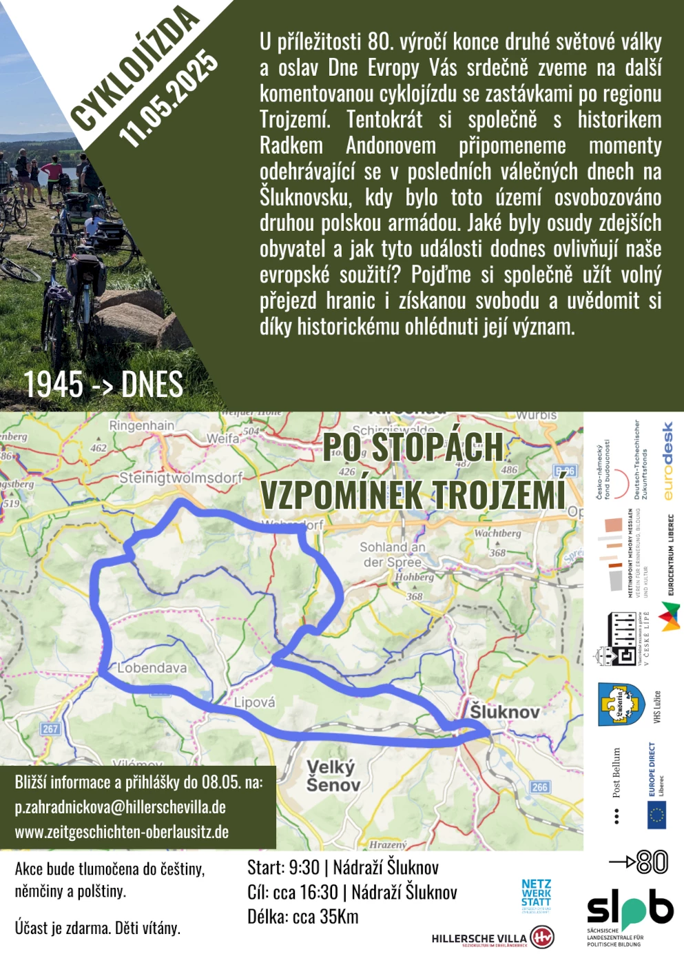 Komentovaná cyklojízda po okolí Šluknova. Během společné cesty po historických místech s ohlédnutím na rok 1945 si především užijeme dnešní svobodu pohybu! Cca 35km.