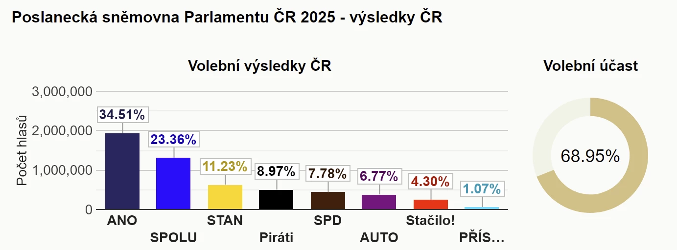 Výsledky parlamentních voleb v ČR dne 3.-4. 9. 2025