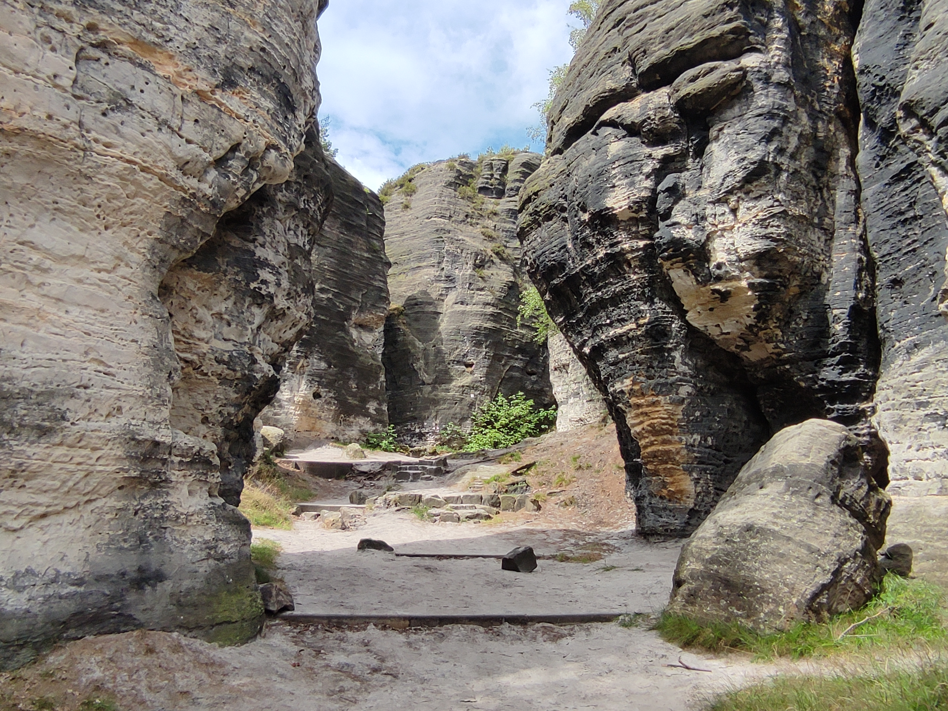 Skalní město Tiské stěny (613 m n. m.) je součástí Chráněné krajinné oblasti Labské pískovce. Společně s Rájeckými stěnami, Ostrovskýmí stěnami a Sněžníkem tvoří atraktivní turistickou a horolezeckou oblast. Pískovcové skalní útvary podporují fantazii návětěvníků. Jednotlivé skalní útvary mají svá tradiční vlastní jména.