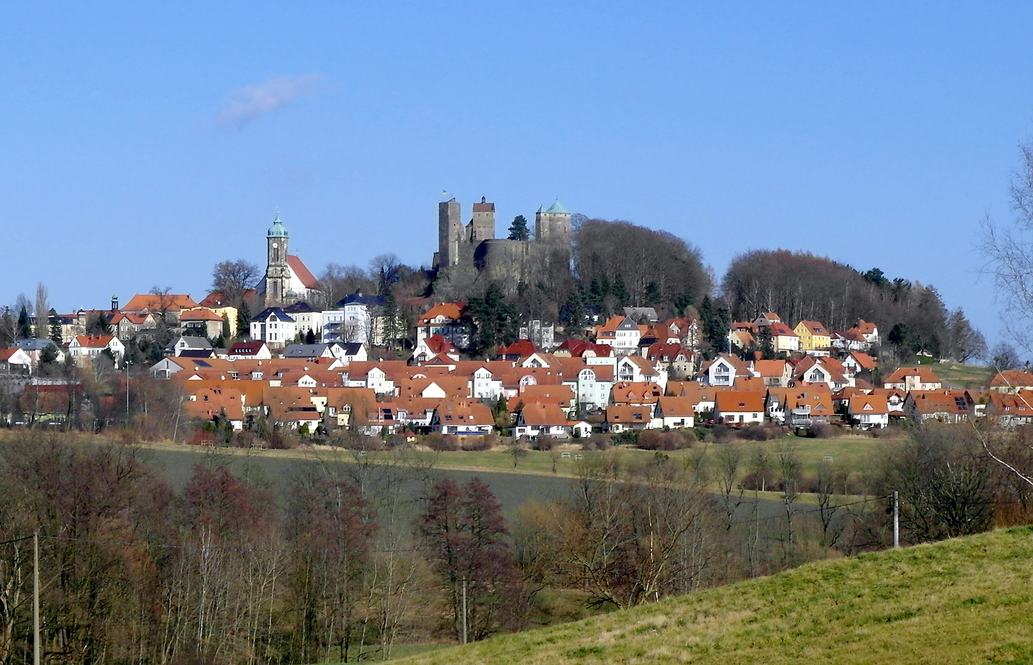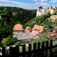 The train station Stolpen directions_railwaydirections_bus is a bit outside of the city. From there it is a 1.5 km walk to the castle (uphill).