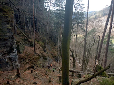 Die tschechischen Teilnehmer unseres Projektes stießen zwar am Startplatz in Dolni Poustevna zu uns, verloren sich allerdings wie auch die Teilnehmer aus Sebnitz auf den unterschiedlichen Streckenabschnitten und durch unterschiedliches Wandertempo. Dadurch war es auch am Ziel nicht mehr möglich, sie auf ein gemeinsames Gruppenfoto zu bekommen.