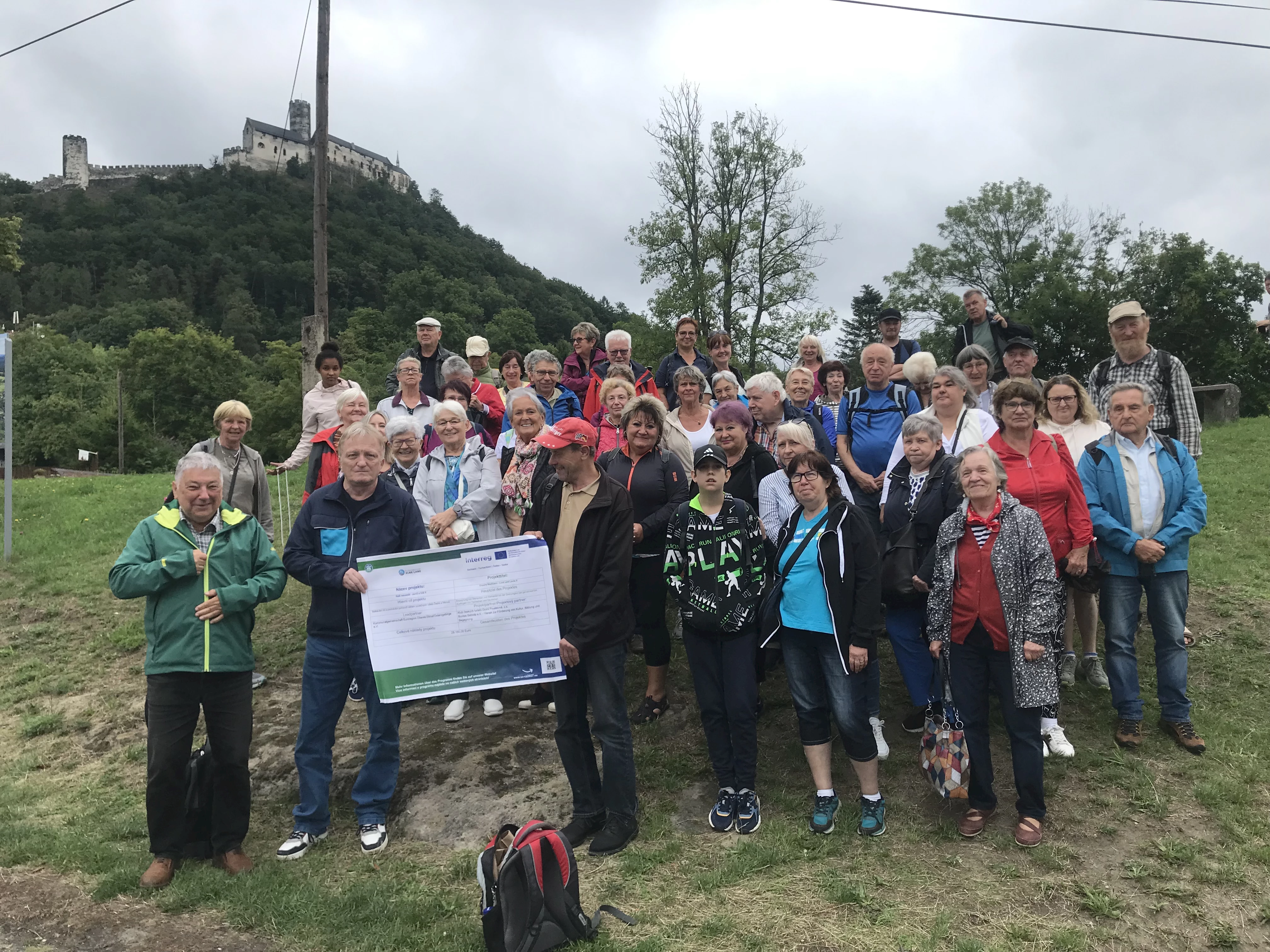 Wir haben die Erfolg bringenden Formen der Werbung beibehalten und hatten vor allem durch einen „Stammgast“ weiteren Zulauf, da dieser dank seiner Tätigkeit als Wanderleiter in Neustadt dort unser Projekt bekannt gemacht hat und weitere Teilnehmer gewinnen konnte. Da Wandern ja ein Mindestmaß an körperlicher Fitness verlangt, sind einige Personen fern geblieben, die sich zwar Stadtführungen mit eher kürzeren Wegen zutrauen aber nicht größere Wanderungen. Trotzdem konnten wir 26 Teilnehmer aus Sebnitz begrüßen, von denen 4 allerdings erst am Startplatz zu uns stießen. Eine Person sogar erst am Ziel. Und zwar handelt es sich um die immer von uns bzw. vom tschechischen Partnerverein abgeholte Käthe Häntzschel. Mit ihren 104 Jahren hat sie doch tatsächlich die 5 km-Strecke absolviert.
