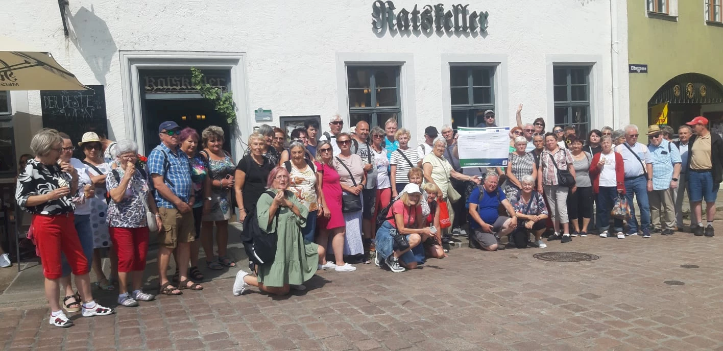 Die nach wie vor enorme Hitze in den Vortagen und der ungünstige Zeitpunkt (in Sebnitz fanden die Sommer-Kulturtage mit ihrem Höhepunkt genau am gleichen Tag statt) ließen eine geringere Teilnehmerzahl erwarten, zumal von den tschechischen „Stammgästen“ einige nicht so Kulturbegeisterte abgesagt hatten. Mit 36 Mitreisenden wurden unsere Erwartungen allerdings sogar übertroffen.