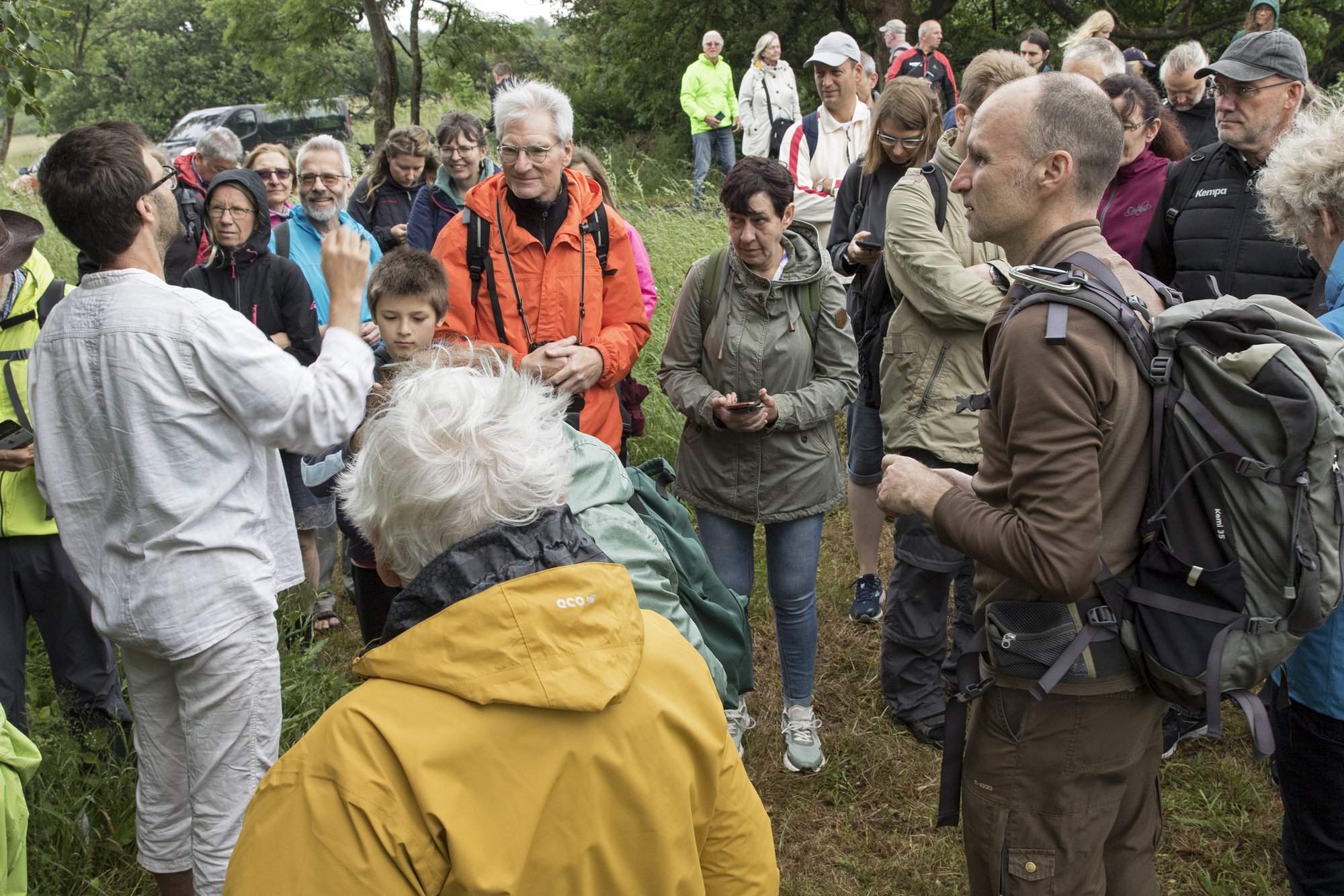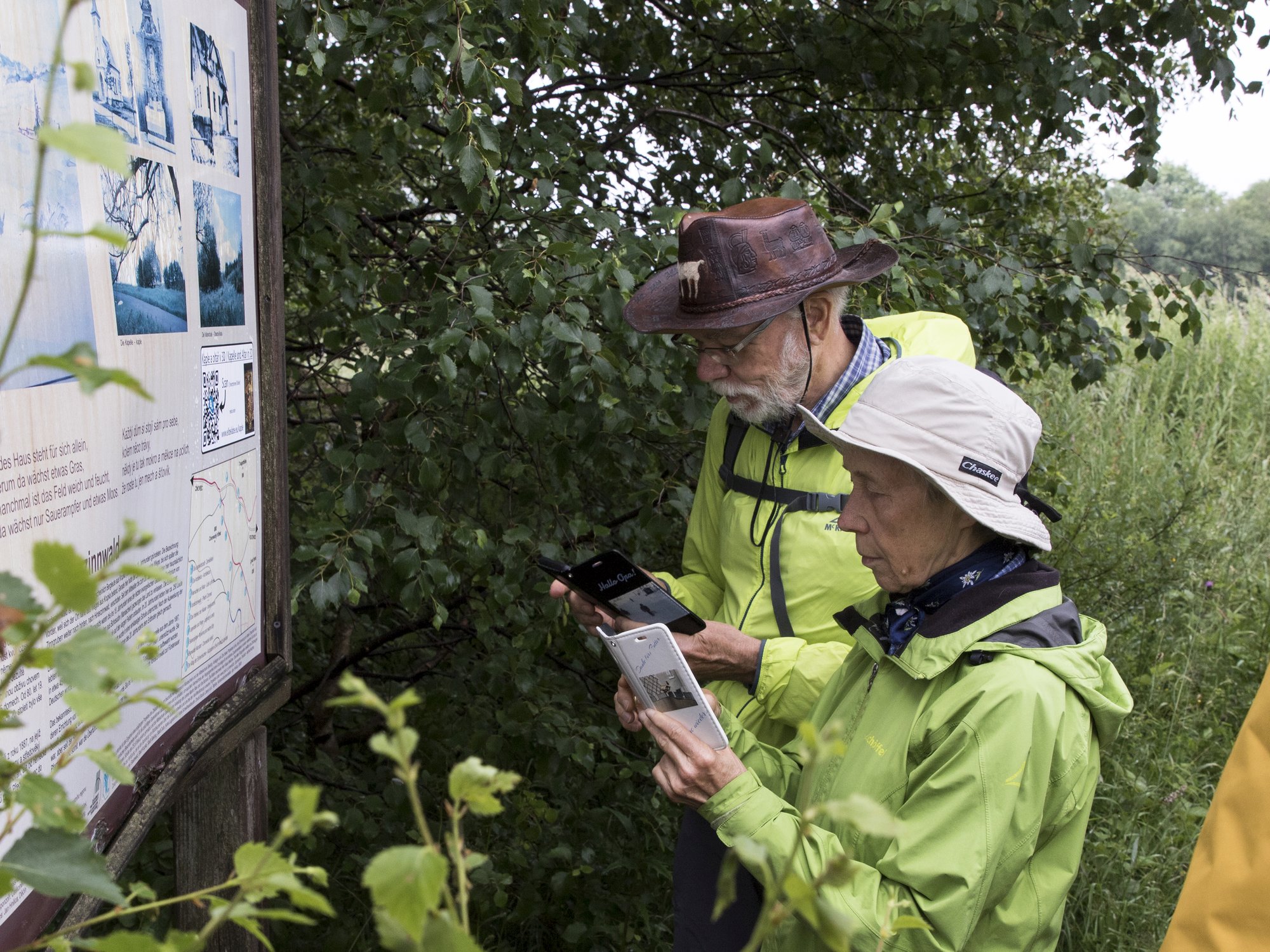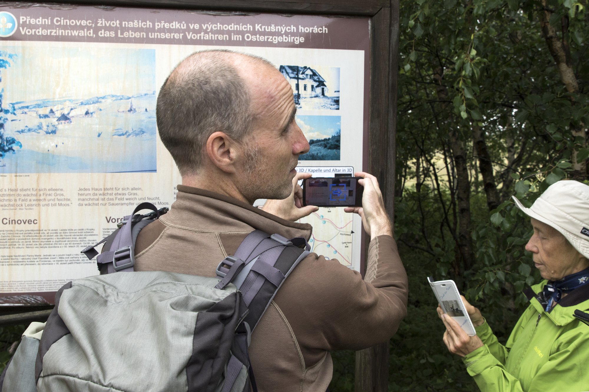 Den Auftakt machte um 9 Uhr die Einweihung der wiederauferstandenen Kapelle in Vorderzinnwald mit dem sog. Fürstenauer Madonnenaltar. In einem Projekt der Euroregion wurden beide mittels moderner Technik (Augmented Reality) in 3D erlebbar gemacht. Rund 40 Personen fanden sich zu früher Stunde bei feuchtem Wetter am Treffpunkt ein, um dies erstmals auszuprobieren. Danach wanderten sie durchs ehemalige Vorderzinnwald bis zum Mückentürmchen. Zum Glück wurde die Gruppe von Regen verschont, auch wenn die Wolken tief hingen.
