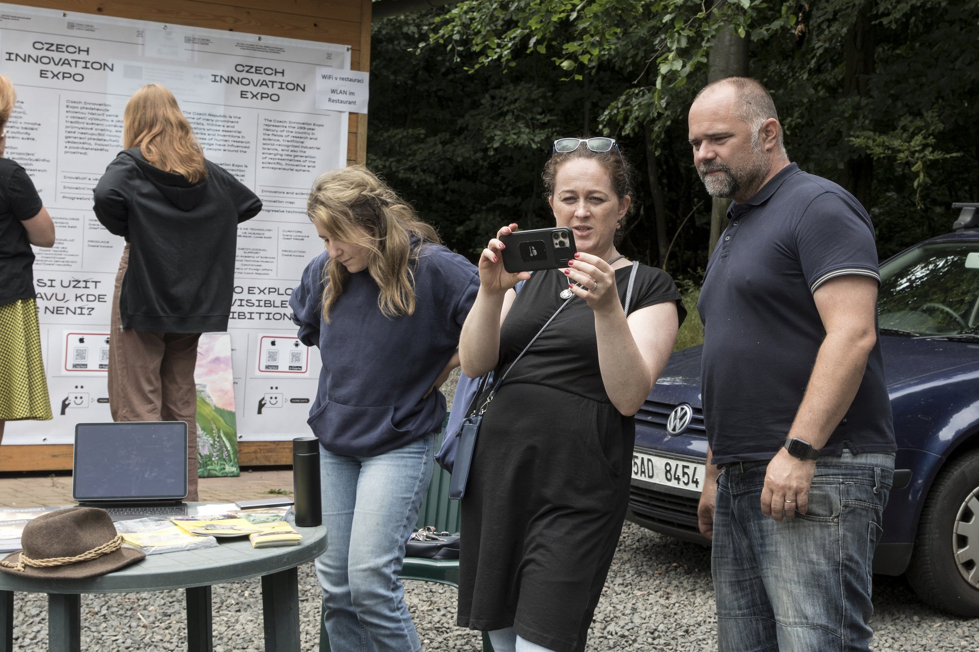 Im Vorraum des Restaurants konnten sich die Besucher*innen über verschwundene Orte im Grenzgebiet informieren und bei Führungen durch die ehemaligen Orte Ebersdorf (Habartice) und Vorderzinnwald (Přední Cínovec) gleich auf Spurensuche begeben. Im Stollen Starý Martin, ein Stück unterhalb des Mückentürmchens, wurden drei Besichtigungen angeboten.