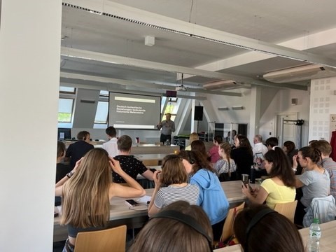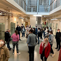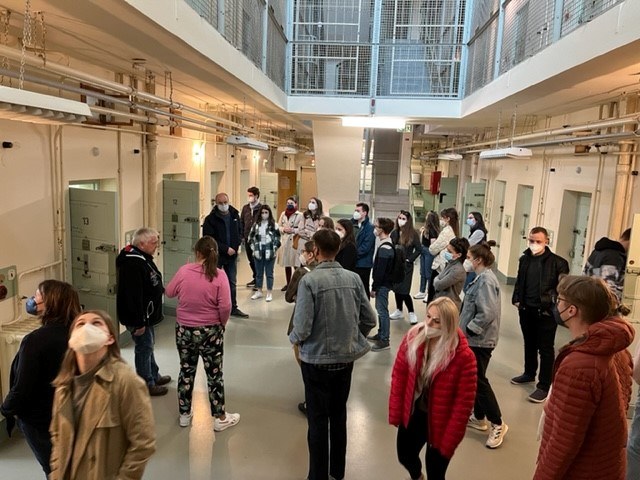 Der zweite Tag startete in der Gedenkstätte Bautzner Straße. Michael Schlosser, der wegen versuchter Republikflucht in der politischen Haftanstalt eingesperrt war, führte uns durch das Gebäude und erzählte aus seinem Leben. Die Studierenden hatten die Möglichkeit Einsicht in die Akte von Herrn Schlosser zu nehmen und Fragen zur Haftanstalt und Inhaftierung zu stellen. Nach einer kleinen Stärkung berichtete Marta Kozlowska (Forum MIDEM), Expertin für Polen, Migration und Demokratie, wie die Herausforderungen der Geflüchteten aus der Ukraine bewältigt werden. Der zweite Themenkomplex des Nachmittags widmet sich "„Nachhaltigkeit und Klimaschutz vor Ort“. Während eines Walk & Talk in Kleingruppen diskutierten die Studierenden aktuelle klimapolitische Herausforderungen, den Mehrwert des Abkommen von Paris und Handlungsmöglichkeiten. Martin Wunderlich von der LAG Queeres Netzwerk Sachsen setzte sich in seinem Vortrag mit der Frage auseinander, wie sich politisch für Vielfalt und Gleichstellung eingesetzt werden kann. In der anschließenden Diskussion stellten die Teilnehmenden viele Fragen und kamen mit Herrn Wunderlich ins Gespräch.