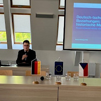 Patrick Reitinger, historisch arbeitender Geograph von der Otto-Friedrich-Universität Bamberg, eröffnete den inhaltlichen Teil der Konferenz mit einem Vortrag zu den deutsch-tschechischen Beziehungen. Er präsentierte bedeutende historische Meilensteine wie die Gründung der Ersten Tschechoslowakischen Republik, den Zweiten Weltkrieg oder das Ende des Kalten Krieges und ihre Bedeutung für die Gegenwart. Zentral für die Demokratien beiderseits der Grenze, so Reitinger, sei vor allem eines: Streit. Nur, wenn wir uns austauschen und diskutieren, können wir auch Verständnis für unterschiedliche Perspektiven gewinnen, die oft durch unterschiedliche historische Erfahrungen entstanden sind. Und nur dann, wenn wir miteinander reden, uns füreinander interessieren, nur dann wächst eine starke Zivilgesellschaft.